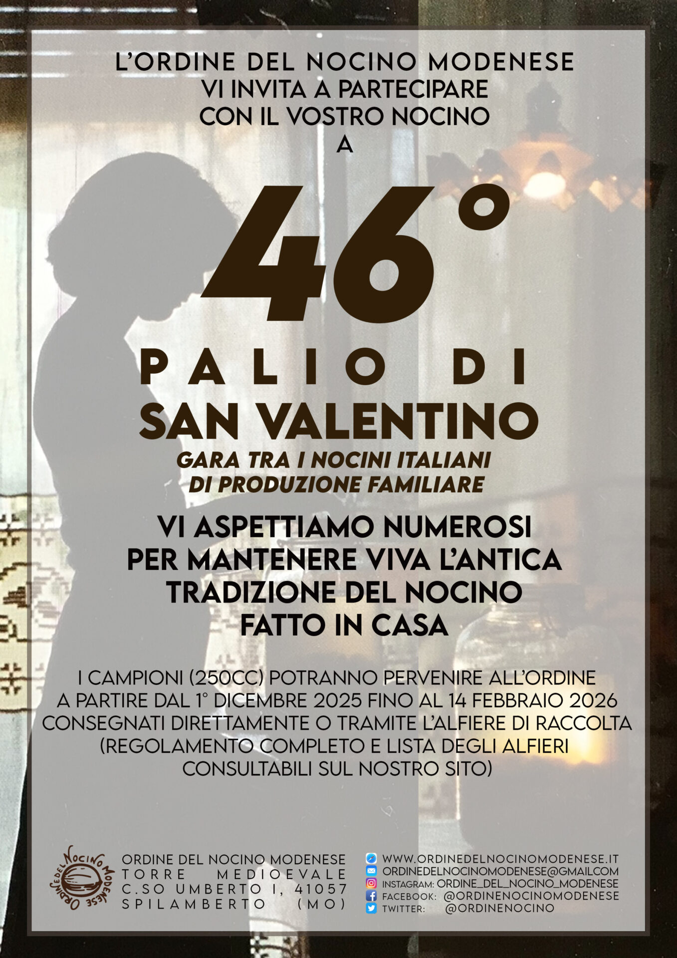 Il Palio di San Valentino è una prestigiosa competizione che premia i migliori Nocini di produzione familiare, organizzata dall’Ordine del Nocino Modenese.
